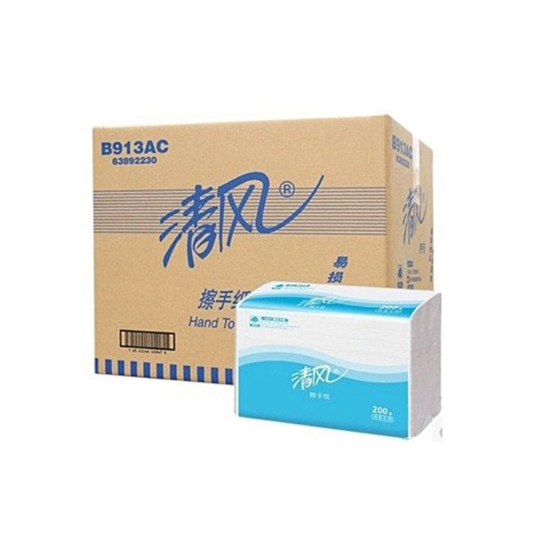 B913AC 清风1层三折200张擦手纸 225*230mm 200张/包*20包/箱