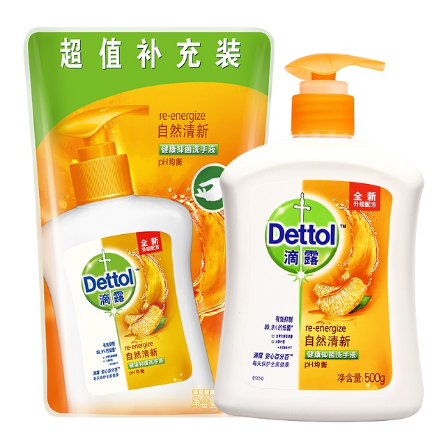 3067560 滴露健康抑菌洗手液植物呵护 450克+自然清新450克 450g*2X6